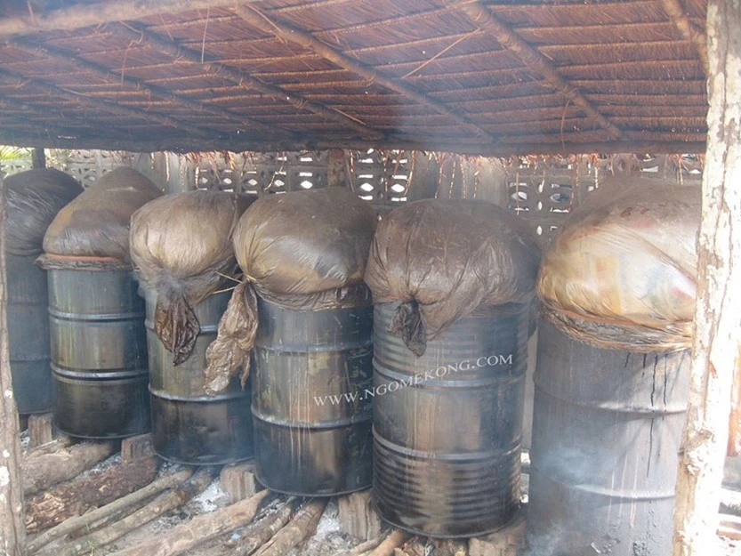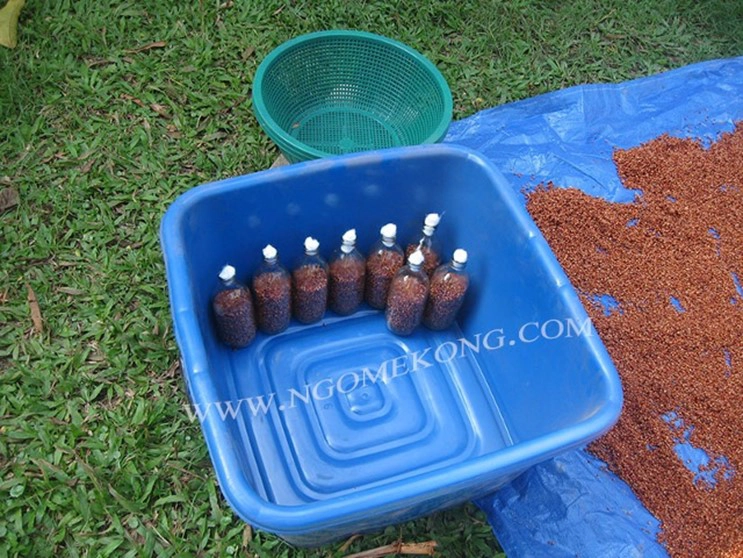 Une fois bouillies, les graines de millet sont égouttées et étalées pour sécher au soleil. Cette étape est cruciale pour éviter la formation de moisissures et pour assurer une texture adéquate lors de l’inoculation.