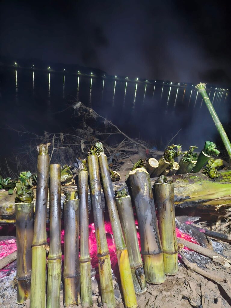 Ce dessert se compose de riz gluant fraîchement récolté, mélangé à du lait de coco et du sucre, parfois agrémenté de haricots rouges ou de morceaux de taro. Mais ce qui le distingue, c’est sa méthode de cuisson ancestrale : à l’intérieur d’un bambou frais.